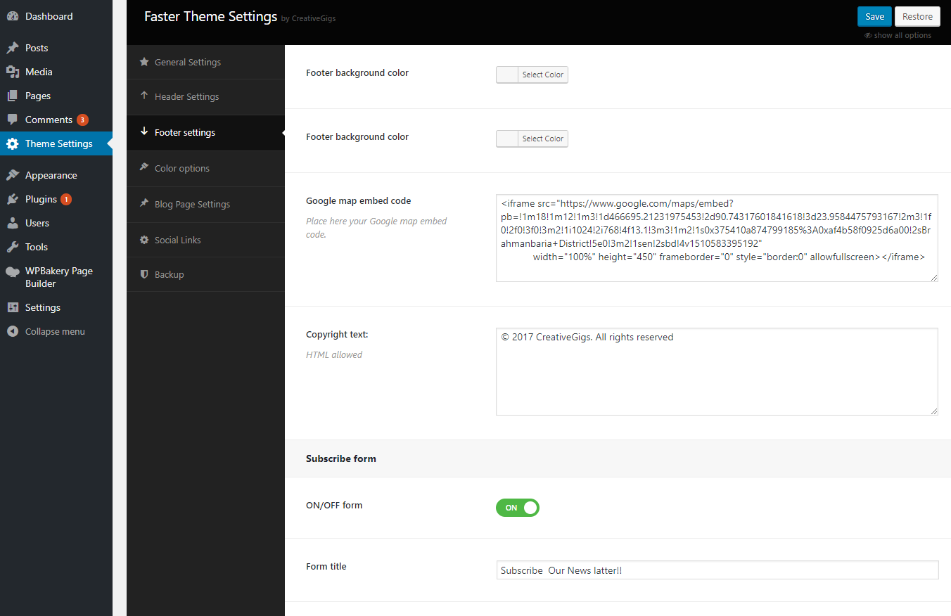Footer Settings