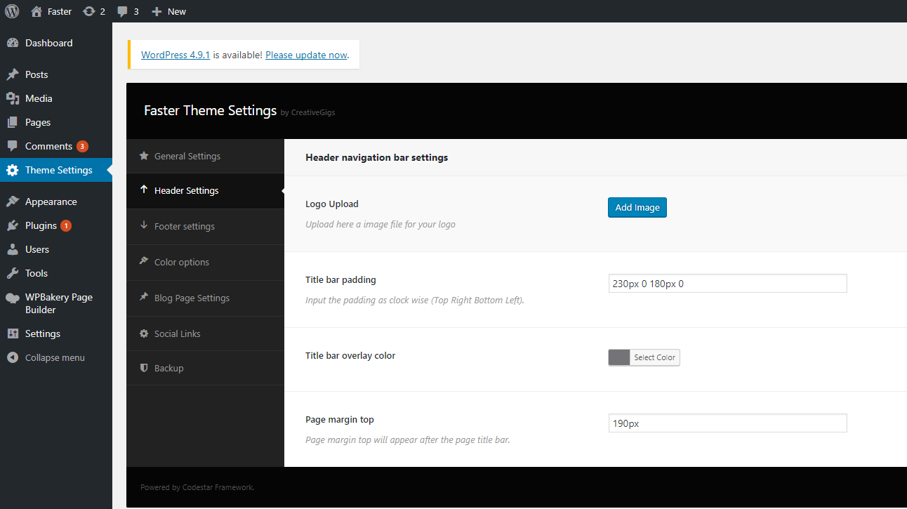 In the Header settings section, you will get a lot of header customization options. In this section, you can change the logo and change the page/post’s Title bar padding, Page margin-top, Title bar overlay color etc.